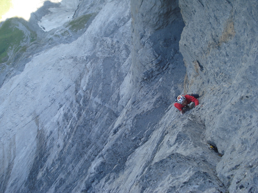 Dans la 7e longueur, il faut quitter le dièdre évident
