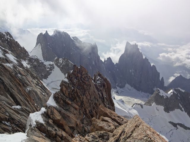 Mont-Blanc, Brouillard, Divine providence, Innominata, Freney...2013, Pilier Rouge du Brouillard, voie directe Gabarrou / Long avec sortie au Mont-Blanc, en compagnie de Greg Röder, les 26 et 27 juillet. Départ nocturne du Rifugio Monzino et attaque du Pilier. Bivouac à la fin de l'escalade proprement dite, superbe voie! Le lendemain, c'est la longue montée au Pic Louis Amédé, puis au Mont-Blanc par l'interminable arête du Brouillard, descente sur les Cosmiques. Une belle et grande course parmi ce que les Alpes offrent de plus long. 2003, "Les anneaux magiques" au pilier rouge du Brouillard, en compagnie de Julo, retour en rappel. Deux nuits passées au refuge Eccle afin de m'acclimater avant de partir à la Tour de Trango. Magnifique voie. 2002 , Divine providence :ascension réalisée les 27 et 28 juillet 2002, par 2 aspirants-guides suisses, Denis Burdet et Nicolas Zambetti. Denis réussit les 4 longueurs les plus difficiles « à vue » en plaçant les protections, soit 7a+, 7b, 7c et 7b+. Quelques pitons, dont il faut se méfier, parsèment la voie. 2 ou trois lames peuvent s’avérer utiles, notamment pour la longueur 7a+. Nous ne les avons pas employés, mais on ne sait jamais. Par contre, en cas de retraite depuis le bivouac, il reste quelques clous dans la rampe, mais bien des relais sont à renforcer, il faut juste y penser ! En ce qui concerne l’accès, on peut dire que pour la descente du col Moore, passer le plus possible à gauche en descendant, on trouve 3 rappels en place, dans du rocher sain, qui n’ont pas été touchés par l’éboulement de 97, (ils étaient déjà là en 95). Il est préférable ensuite d’attaquer par la rampe qui est à droite (en regardant le pilier) de celle qui est décrite dans le topo de Michel Piola, c’est nettement plus facile quand on est lourdement chargés. Lire le récit détaillé de cette ascension ci-dessous. Une autre belle ascension de" Divine" en 2024, avec le témoignage des ouvreurs en personne. 2002, juste avant l'ascension de Divine, nous avions réalisé, avec Denis, l'arête de l'innominata en 12 heures depuis Monzino, avant de redescendre par Miage sur le Val Vény, interminable. Ce fut une bonne acclimatation. 1995, tentative à Divine providence en compagnie de Christophe Germiquet, mauvais temps au bivouac à mi-paroi, nous hésitons puis équipons 14 rappels afin de remonter tout légers au col Moore et au col du Trident. Une aventure marquante!! 1991, j'avais 17 ans, Pilier central du Freney avec Toto et Christophe, en 23 heures depuis le refuge Eccle au refuge Vallot, c'était mon premier Mont-Blanc Pour plus d'informations...