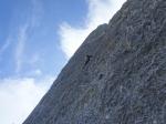 Dolomites, Pale di San Martino 2018 - 19 et 223 août 2022 Monte Agner, Pilastro Bee. Le Monte Agner, surnommé “El gigante » à cause de ses dimensions phénoménales propose la plus longue voie des Dolomites avec les 1600m du Spigolo nord, quasi notre Eiger ! Il est évident que nos chemins allaient un jour nous conduire au pied du colosse ; mais pas par la voie classique. C’est le « Pilastro Bee » de la face nord-ouest, décrit comme la plus belle voie de l’Agner dans un numéro de « Vertical », qui nous attire. Il s’agit d’une voie de 20 longueurs dont l’accès nécessite déjà pas mal d’acrobaties et quelques heures d’efforts.