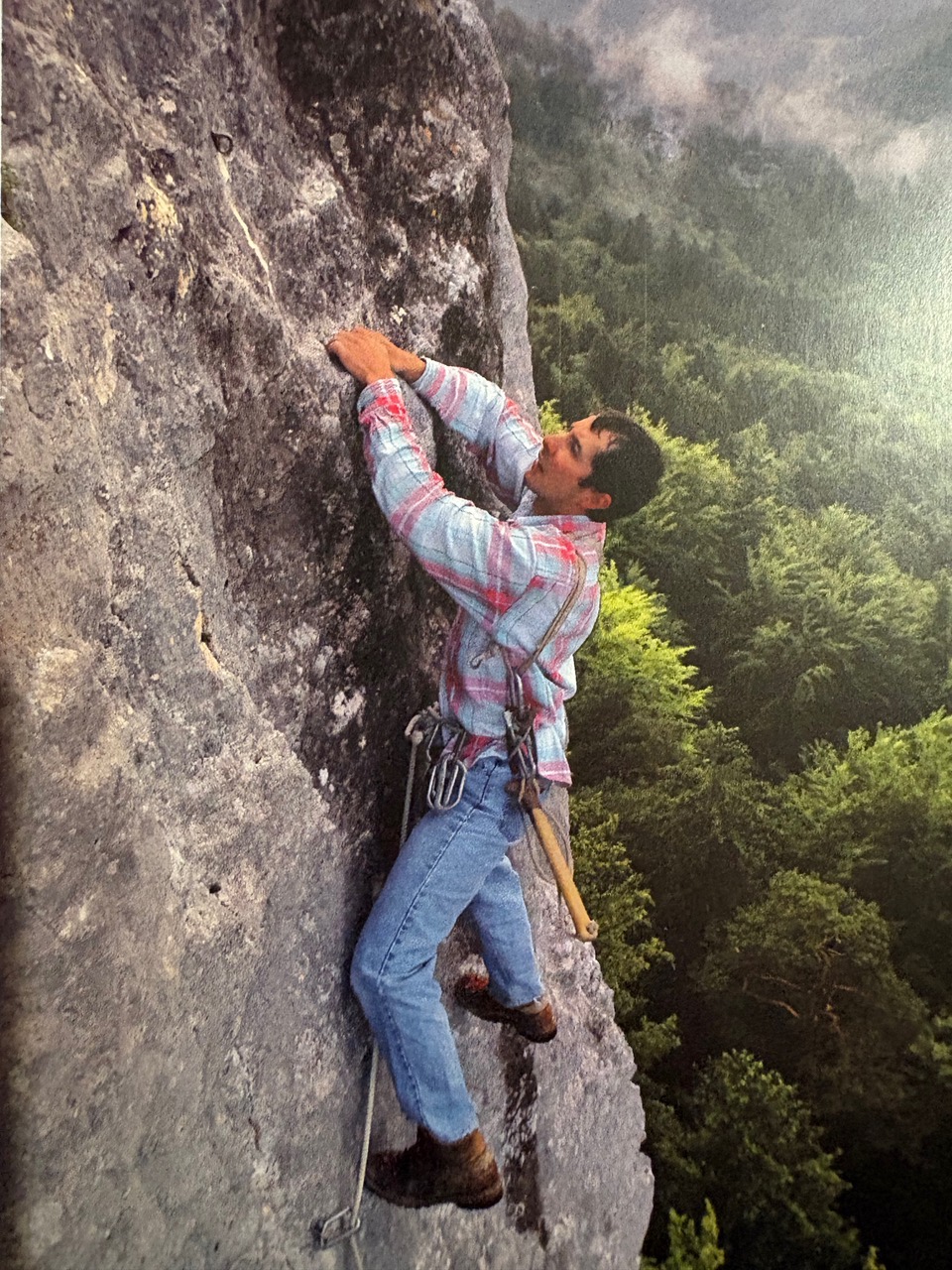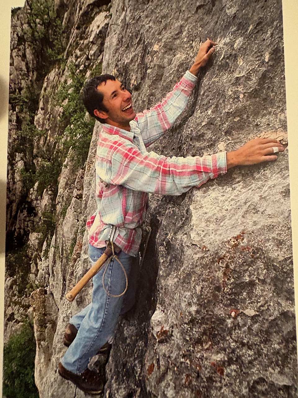 Vaferdeau (Rochers du midi), 202420.10.2024, « L’Appel mental ». Magnifique performance de Julo, mon Brother, qui enchaîne, après 43 ( ! ) essais, la combinaison droite / gauche, c’est-à-dire « Sida mental / Appel du bistro », les pas les plus teigneux de Sida suivis d'une relaxation, là ou les 2 voies ont quelques prises communes, et le final explosif de l’Appel. Bravo pour la détermination ! En ce qui concerne le vaste débat de la cotation, il propose 8b, sans genouillère pour le crux final qui portait à discussion. Si le premier à avoir grimpé " l’Appel du Bistro ", Antonin Guenat en 2007, ne s’était pas trop prononcé sur la lettre qui suivait le chiffre, d’autres ont traîné leurs doigts et leur protège-genou par là. Il me semble que pour pouvoir se mettre d’accord, il faut que les règles du jeu soient les mêmes pour chacun. Pour ma part, même si mon avis n’a aucune importance, pour avoir grimpé jadis « Sida mental » et « l’Alchimiste » (l’autre croisement, gauche / droite de ces deux couennes mythiques) qui cotent chacune 8a, il me semble que le final de " l'Appel " est vachement plus dur. Quoiqu’il en soit nous avons passé quelques supers moments au Vaferdeau, j’ai même redécouvert certaines voies en ignorant les spits et posant des coinceurs les jours où il tapait ses essais, et j’ai été très heureux d’être l’assureur de son enchaînement 2024 comme l’a été pour moi en ce beau jour de juin 2007 quand je m’étais dépassé en réussissant « Sida Mental ». Enfin, il y aurait beaucoup de choses à raconter sur cette falaise majeure; des sites d'initiation aux fameuses grandes voies que sont la Joe Brown et la Sensationnelle, qu'il ne faut en aucun cas louper, en passant par une foule de moulinettes au rocher compact, parfois fort déroutant, mais on va s'arreter là, il y a bien assez de monde qui vient par ici. Ce que je peux dire c'est: technique de pieds optimale et doigts d'aciers sont de rigueur ici si l'on ne veut pas se prendre une bonne claque. La technique de grimpe en fissures s'avère aussi très utile selon la ligne choisie.