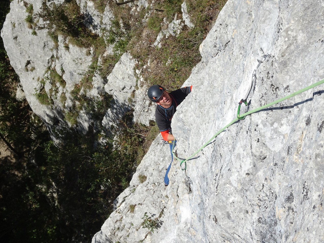 La quintessence des kilomètres de grimpe alpine et engagée que nous avons bouffé au cours de nos carrières, reportée ici, sur cette magnifique falaise perchée dans les gorges du Pichou. Avec les secondes ascensions d’ « Addictions & contradiction " , et d’ «Ici & maintenant » par Julo, à voir un peu plus bas.